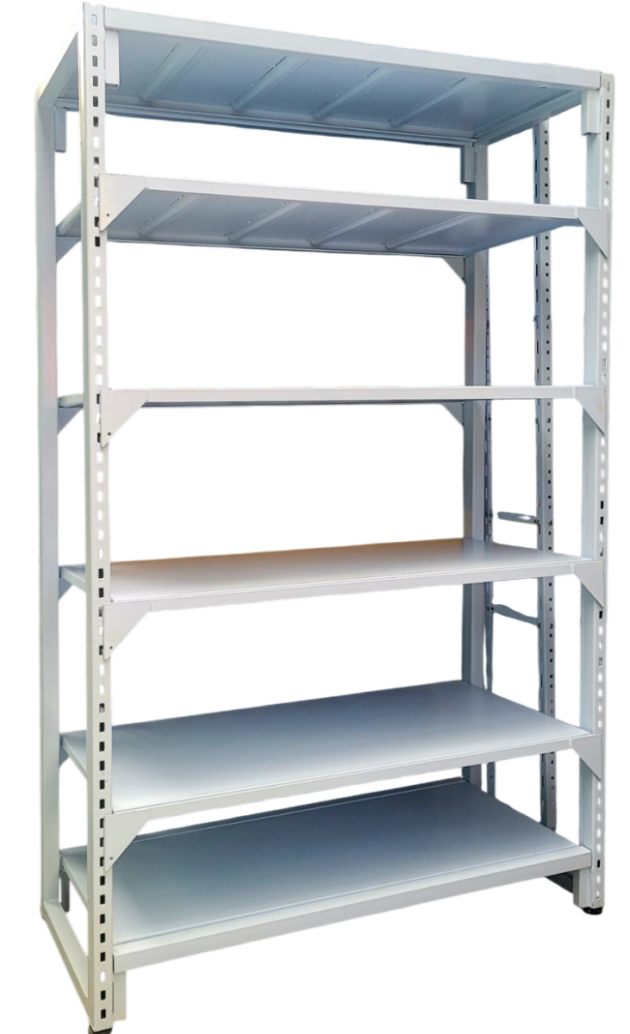 - Estructura resistente: Fabricada en lámina de acero de alta calidad con parales traseros y doble paral frontal, que proporciona la robustez de una estantería para carga semipesada y la versatilidad de una góndola de supermercado.